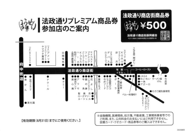 法政通り商店街のお店で利用できる使い勝手の良い商品券です。