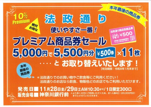 法政通り商店街のお店で利用できる使い勝手の良い商品券です。